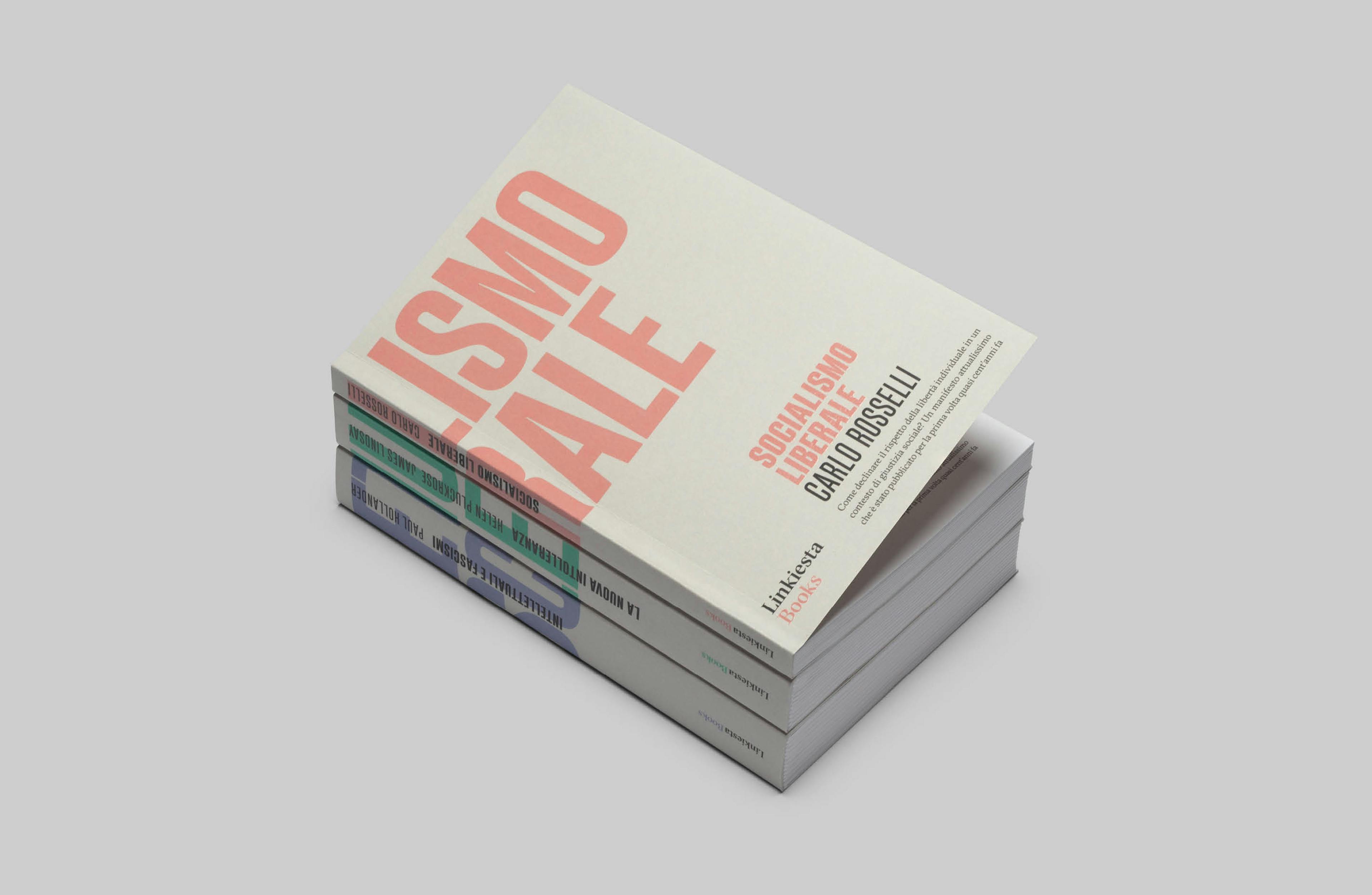 Book series published by Italian media company Linkiesta. The first design featured a big title set in Fixture going across the whole cover, printed in Pantone colours on Colourplan Pale Gray paper. The most recent redesign of the series makes use of a grid, placed on a coloured background, that containes all the information regarding the text. The books come in two different formats depending on their page count. The cover is printed on glossy paper with no flaps.